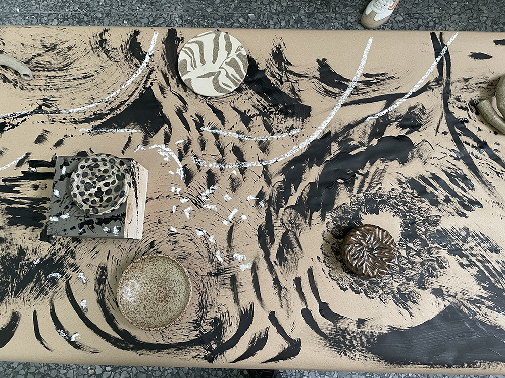 Performance mit Betty Montarou am 27.09. 2025. Keramik und Zeichnung.